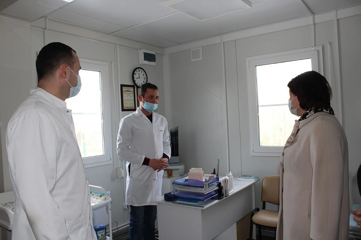 Помимо Гвардейской больницы Наталия Берездовец и Марина Оргеева посетили новый модульный ФАП в Больших Горках, который открылся в 2020 году в рамках нацпроекта «Здравоохранение».
